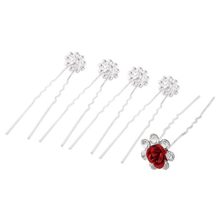 Wedding Bridal Bridesmaid Rose Flower Rhinestone Decor Hair Pin Clip Red 5pcs